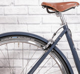 Like many of the European city bikes we sell, Pelago bikes are built for perpetual outdoor storage but are still light enough to carry inside. The 3-speed Shimano Nexus internal gear hub is fully weatherproofed and designed for all-year use with low maintenance needs, and the grip-shifter lets you easily change gears while wearing mittens and standing still at a red light. Fenders keep you dry in shoulder-season rainstorms, and the rim brakes provide reliable stopping power. Sturdy double-walled rims support Schwalbe Delta Cruiser Plus tires with internal puncture-proof protection for riding over glass and urban debris. The frame has welded braze-ons to allow for bottle cage mounting - a feature most city bikes overlook that makes this bike great for longer rides.