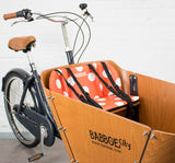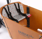 This cushion makes the wooden bench more comfortable for children riding in the Babboe City, Babboe Curve, Babboe Big. The set consists of a cushion for the seat and backrest of one entire bench. An extra cushion can also be used on the additional bench.