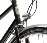 The Airisto Commuter is a glowing example of that sensibility with its efficient riding position, and totally decked out specs. Perfect for zooming through city streets, the 8-speed internal gear hub from Shimano gives you the perfect range to tackle anything the city throws your way. The Airisto’s powerful hydraulic disc brakes hold up in all weather conditions to deliver year-round reliable braking. A slightly low-rise stem paired with city-friendly swept back handlebars mean you can see everything coming your way, without having to compromise an efficient riding position. Best of all, the Aristo comes equipped with a high-end dynamo light set. Powered by electricity produced from the lightweight front hub, the dynamo light is super-bright for those long nordic nights, and best of all: bolted to the bike so firmly that it makes thieves think twice.