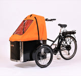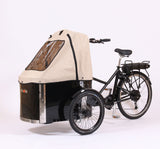 The Nihola Rainhood Family is a specially designed covering for the Nihola Family. The rainhood sits atop a pole set that extends for the cargo bin upwards. The durable cordura material combined with a weather resistant plastic means that the tent is incredibly strong, passengers can see through the hood when enclosed, and they can stay dry when the weather turns sour. It’s an easy installation so whenever the Rainhood isn’t necessary, you can leave it home for another day.